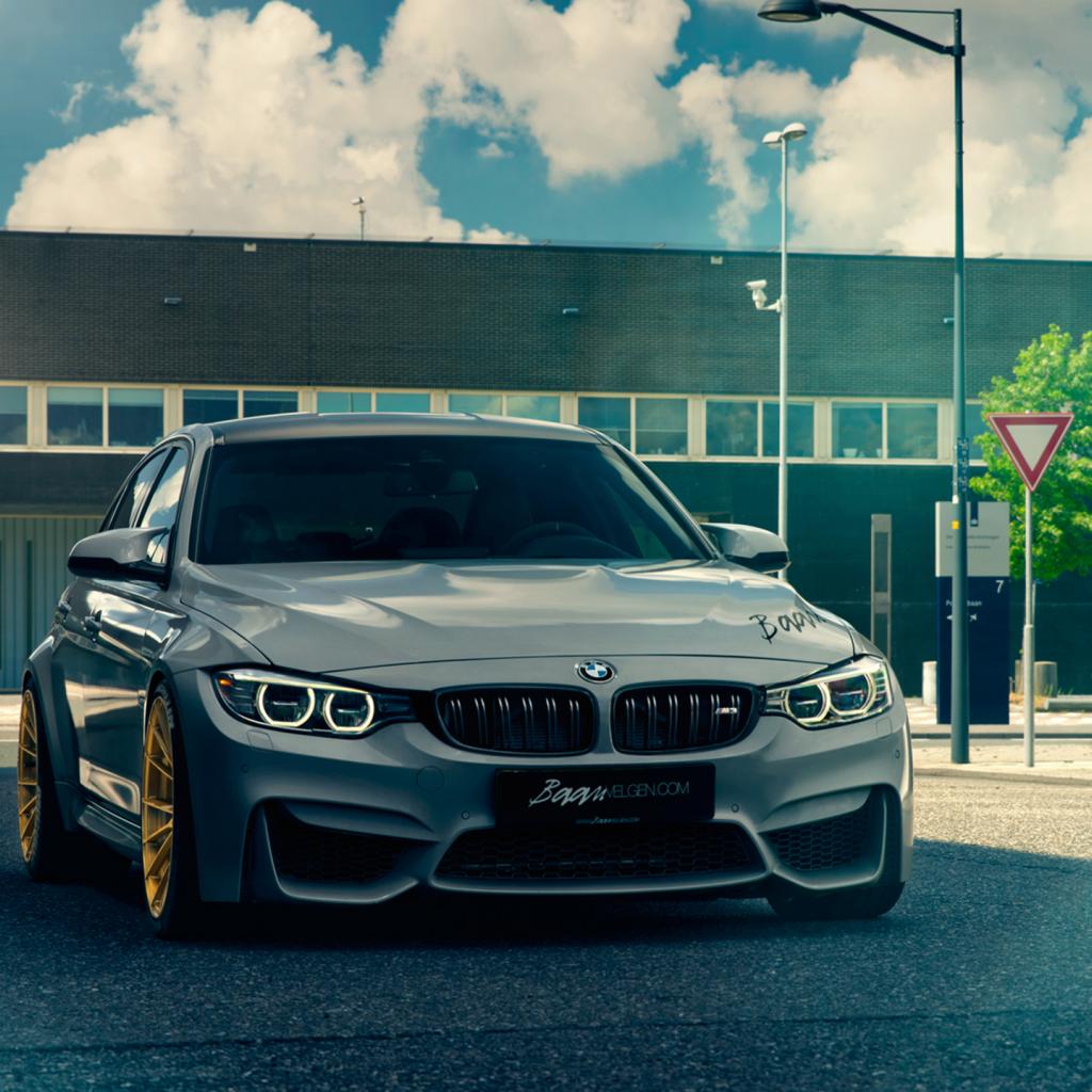 Wallpaper Gray BMW F80 M3 in the city