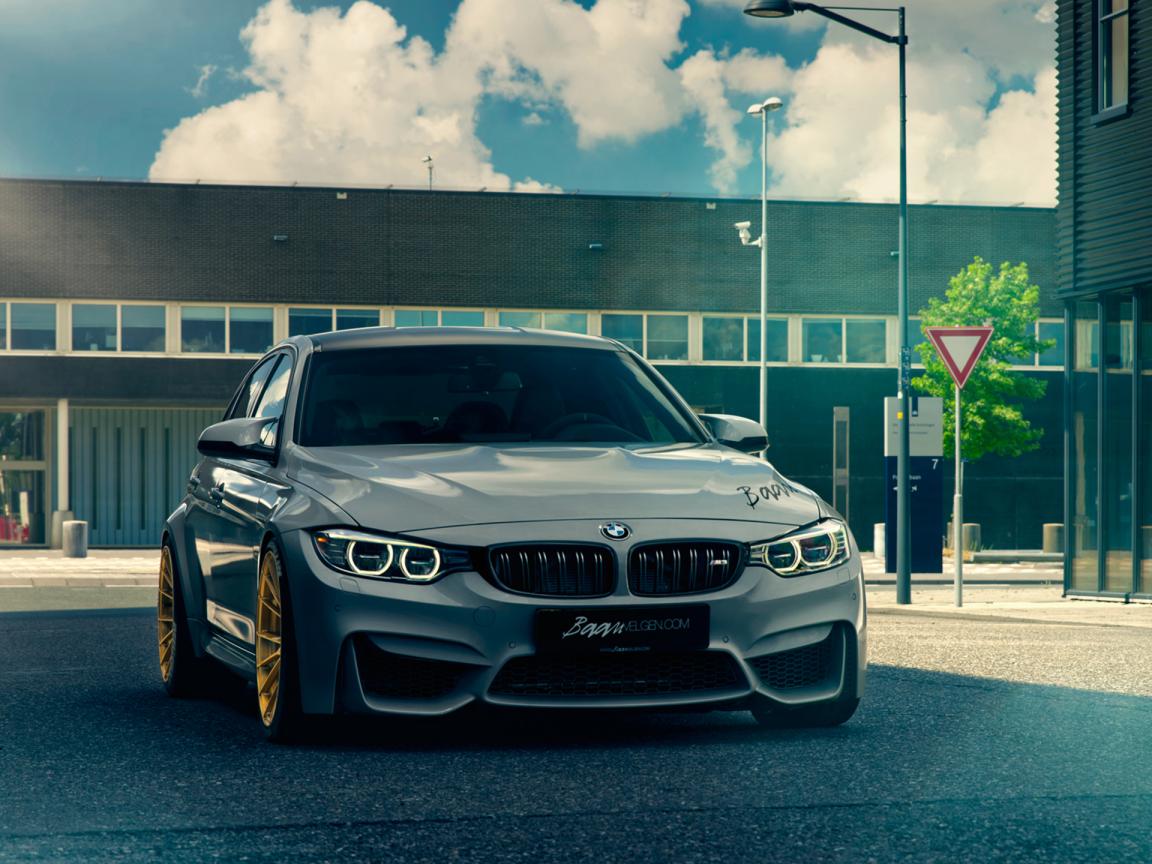 Wallpaper Gray BMW F80 M3 in the city