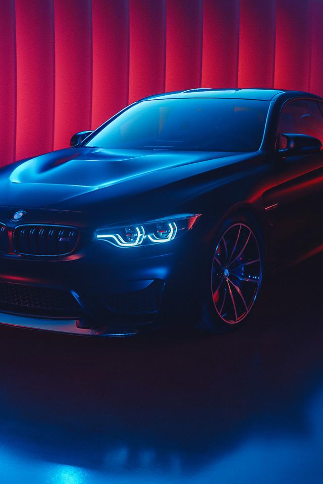 Wallpaper Black BMW M4 with headlights on