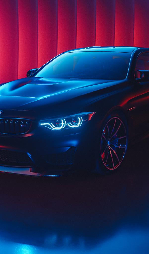 Wallpaper Black BMW M4 with headlights on