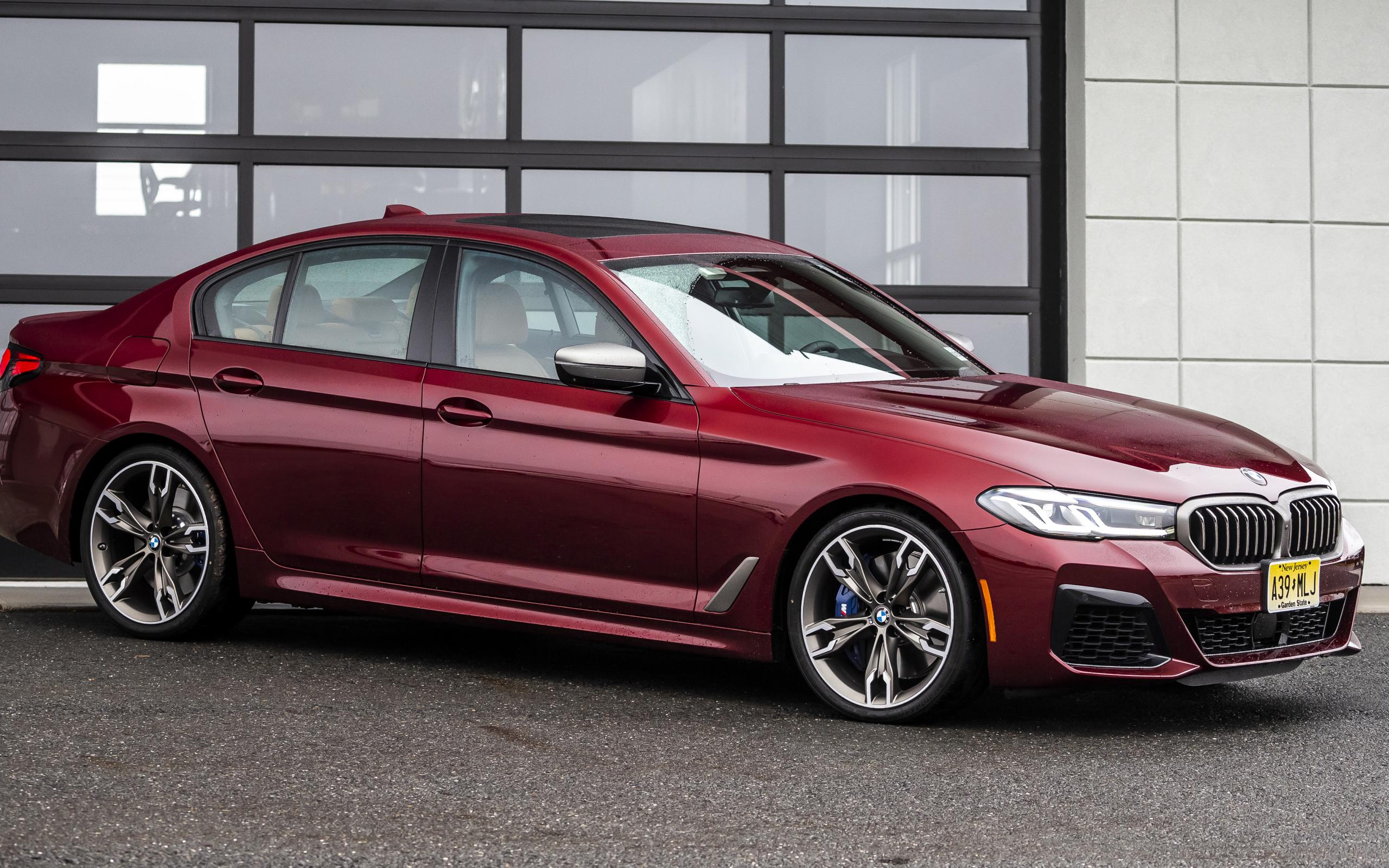Wallpaper Red BMW M550i XDrive, 2021 at the garage