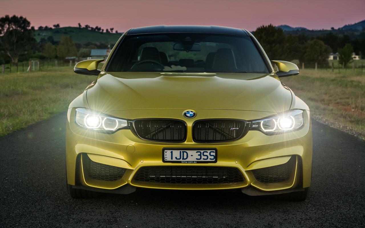 Wallpaper BMW M3, 2018 with headlights on