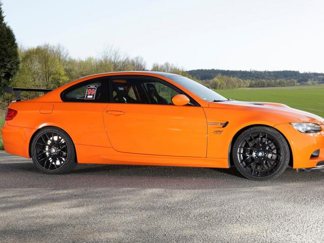 Wallpaper Orange BMW M3 GTR in the background of green field