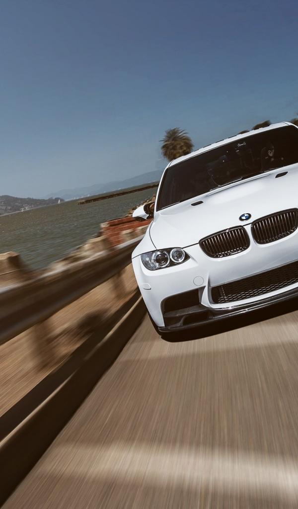 Wallpaper White BMW E92 goes on the waterfront