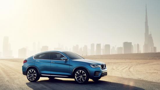 Wallpaper The blue BMW X4 crossover on the city landscape