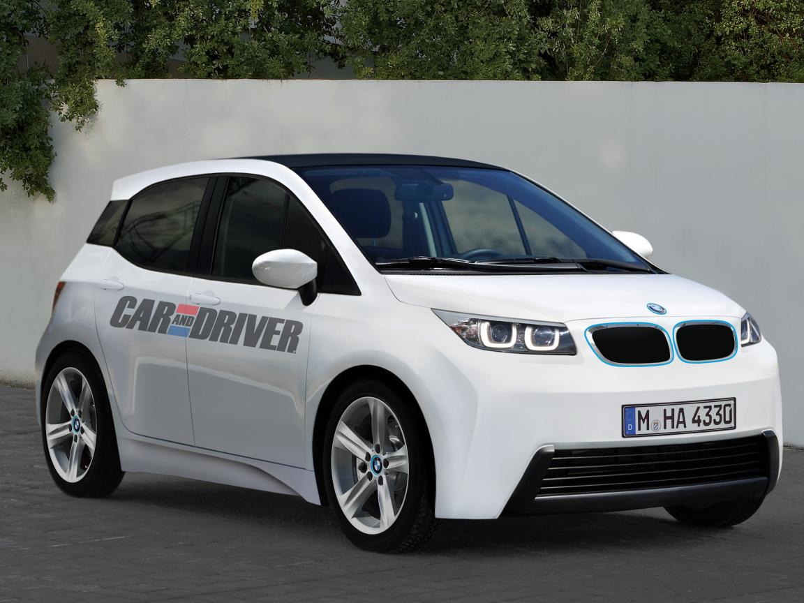 Wallpaper White BMW i3 on the road