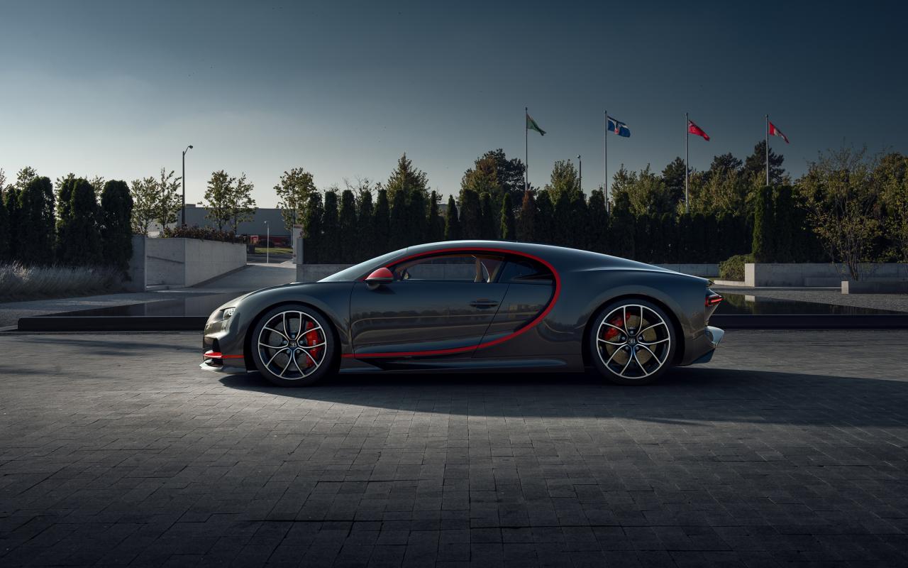 Wallpaper Gray Bugatti Chiron CGI car in the park