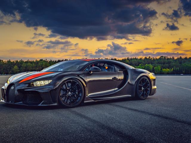 Wallpaper Black car 2019 Bugatti Chiron against the sky