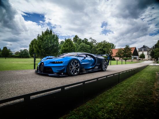 Wallpaper Blue sports car Bugatti Vision Gran Turismo on a blue background