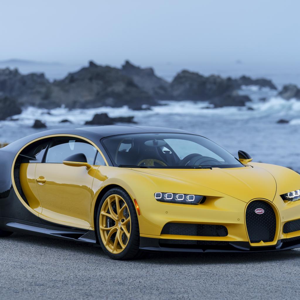 Wallpaper Yellow - black sports car Bugatti Chiron, 2018