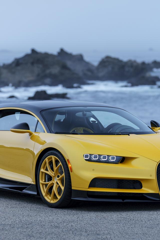 Wallpaper Yellow - black sports car Bugatti Chiron, 2018