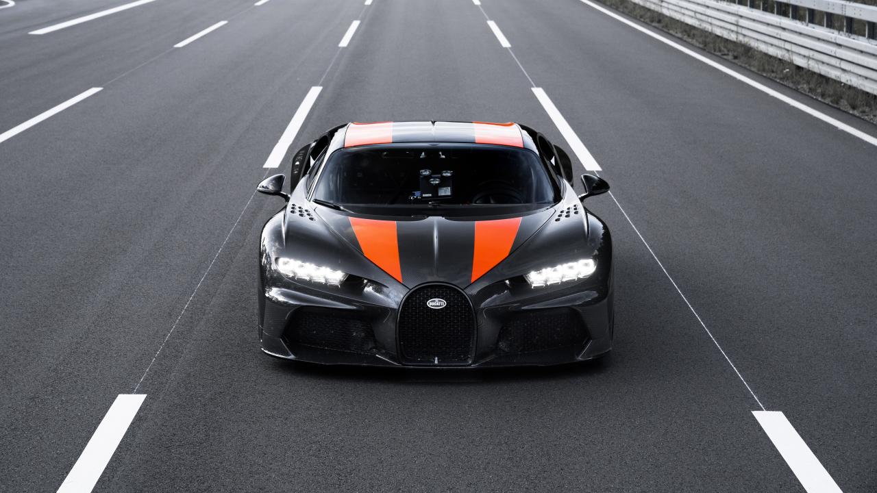 Wallpaper Black car Bugatti Chiron, 2019 on the track