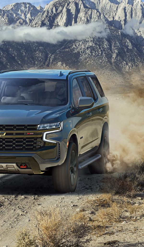 Wallpaper Black SUV Chevrolet Tahoe Z71, 2021 in the mountains