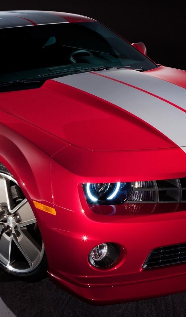 Wallpaper Red Chevrolet Camaro with gray stripe