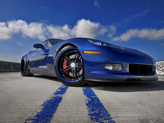 Wallpaper Blue Chevrolet Corvette against the sky