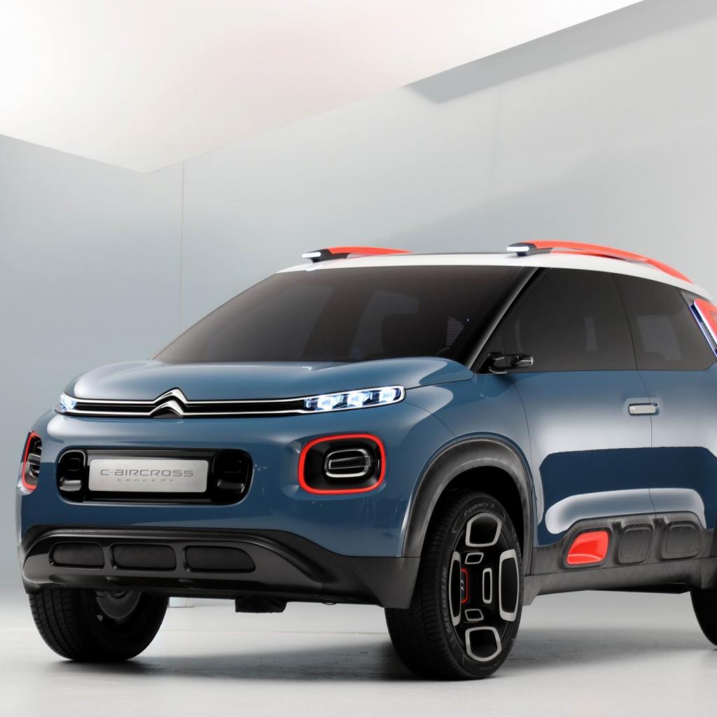 Wallpaper Blue crossover Citroen C5 Aircross, 2018 on a gray background