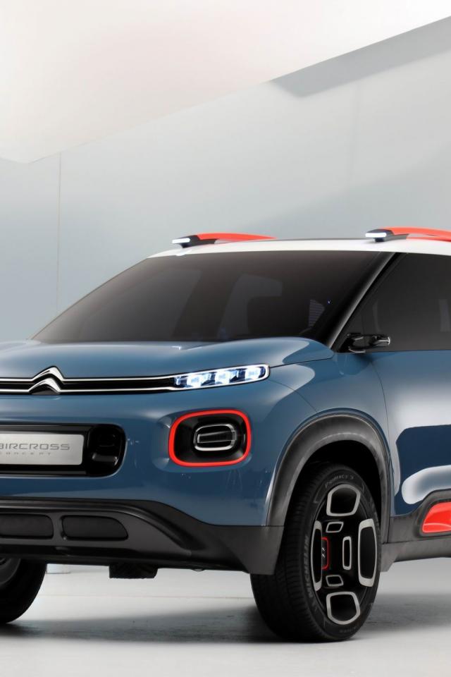 Wallpaper Blue crossover Citroen C5 Aircross, 2018 on a gray background