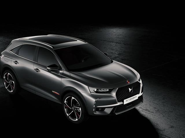 Wallpaper Silver car Citroen DS 7, 2018 on a black background