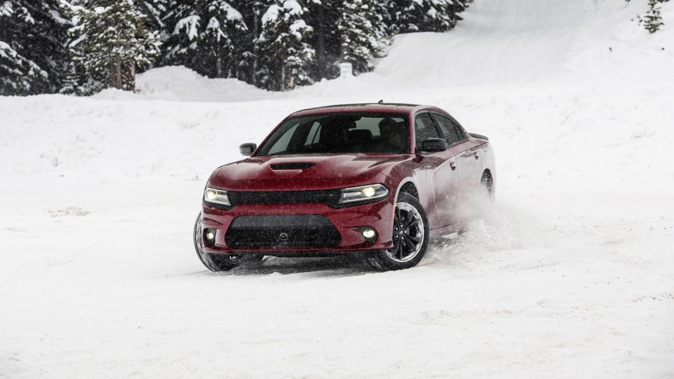 Wallpaper Red 2020 Dodge Charger GT AWD rides in the snow
