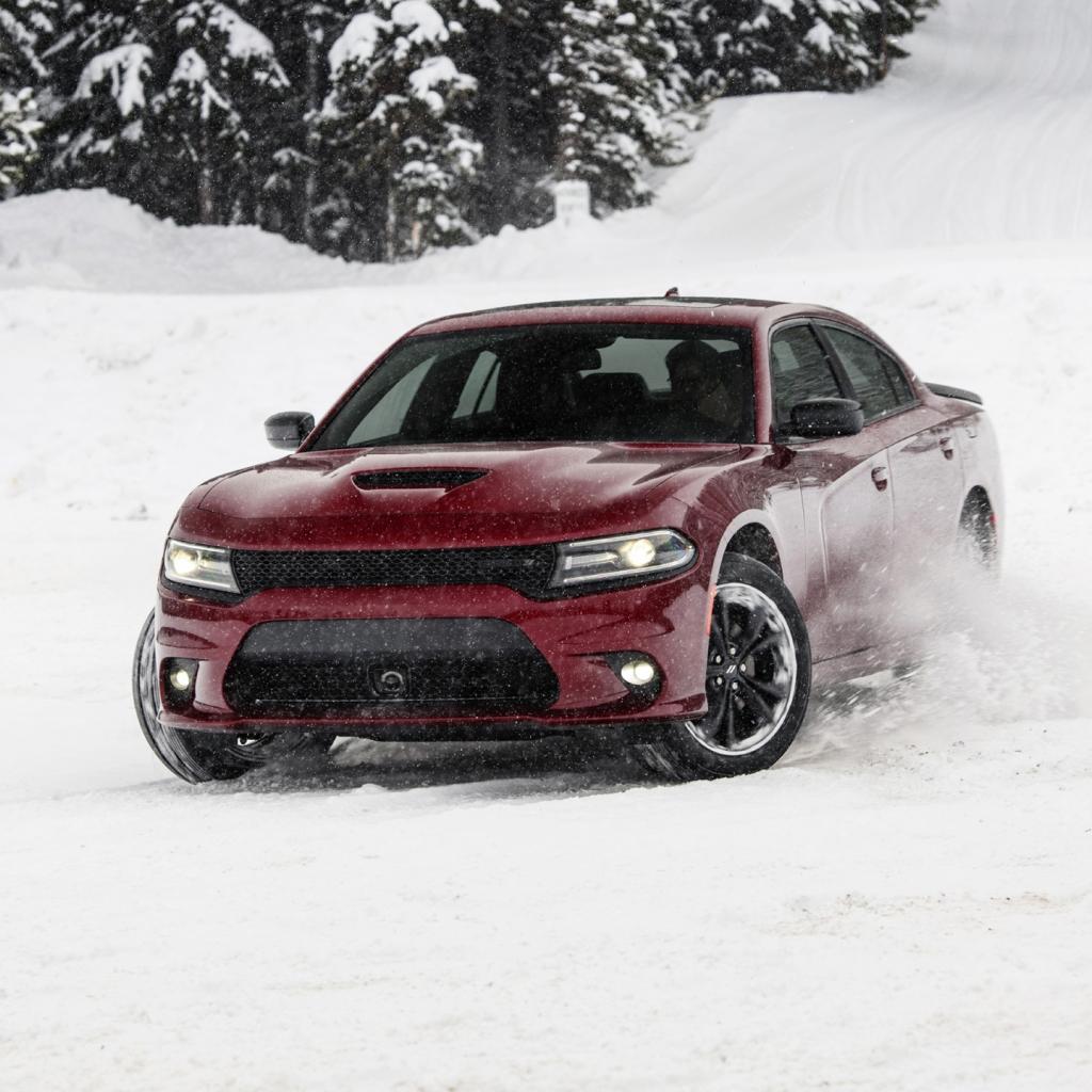 Wallpaper Red 2020 Dodge Charger GT AWD rides in the snow