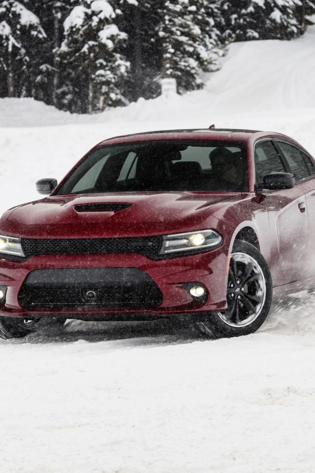Wallpaper Red 2020 Dodge Charger GT AWD rides in the snow