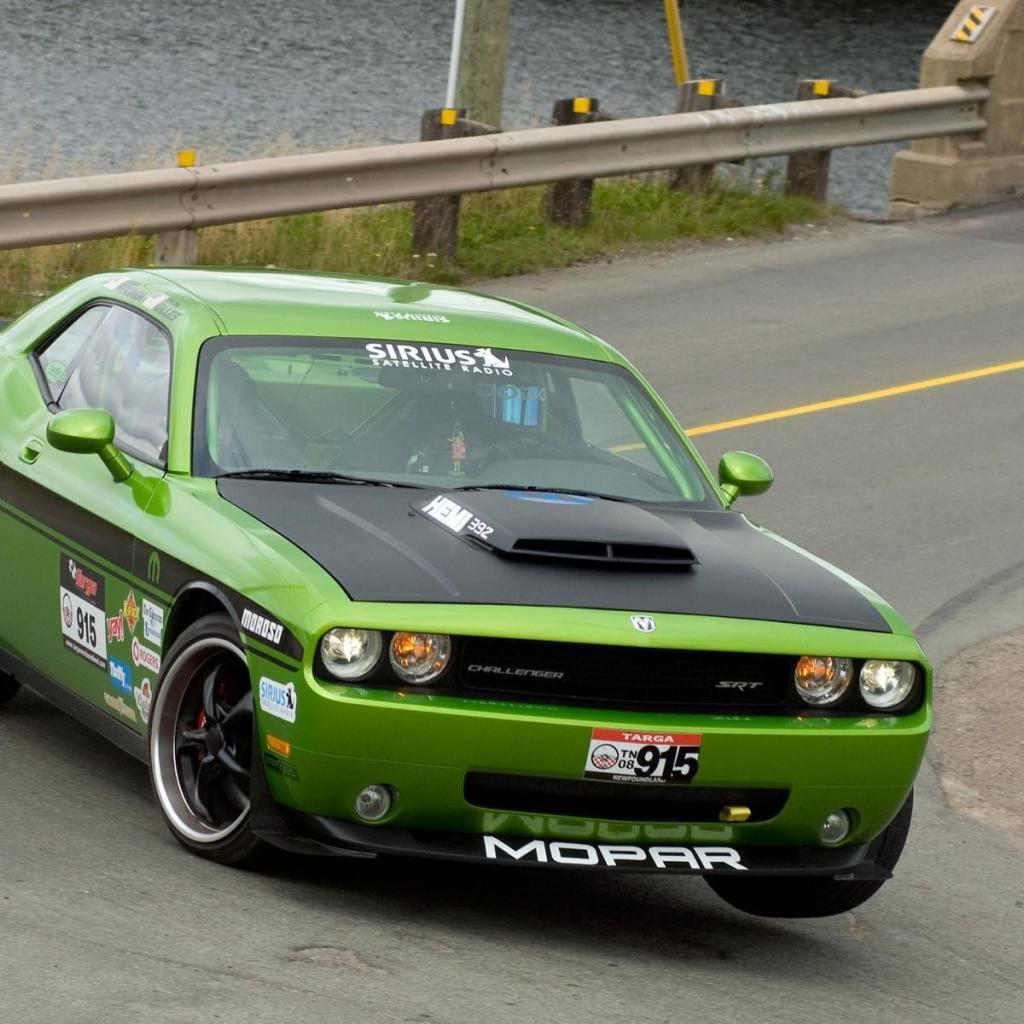 Wallpaper Green Car Dodge Challenger SRT8 cornering