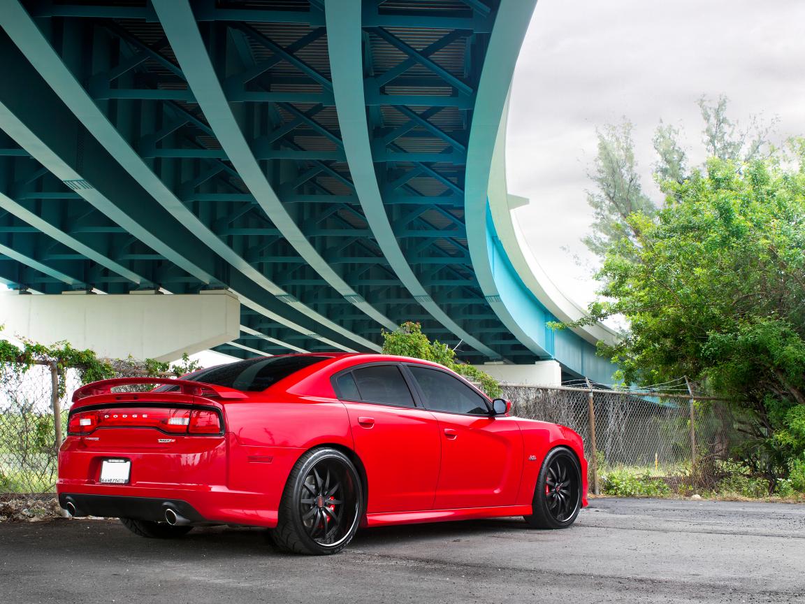 Wallpaper Red Dodge under the bridge