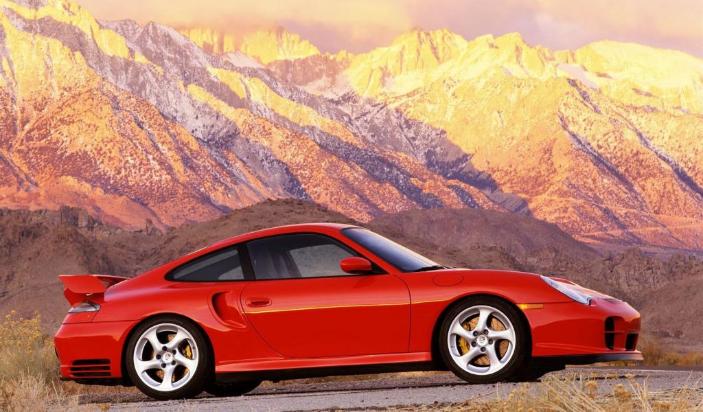 Wallpaper The red car in the background of mountains