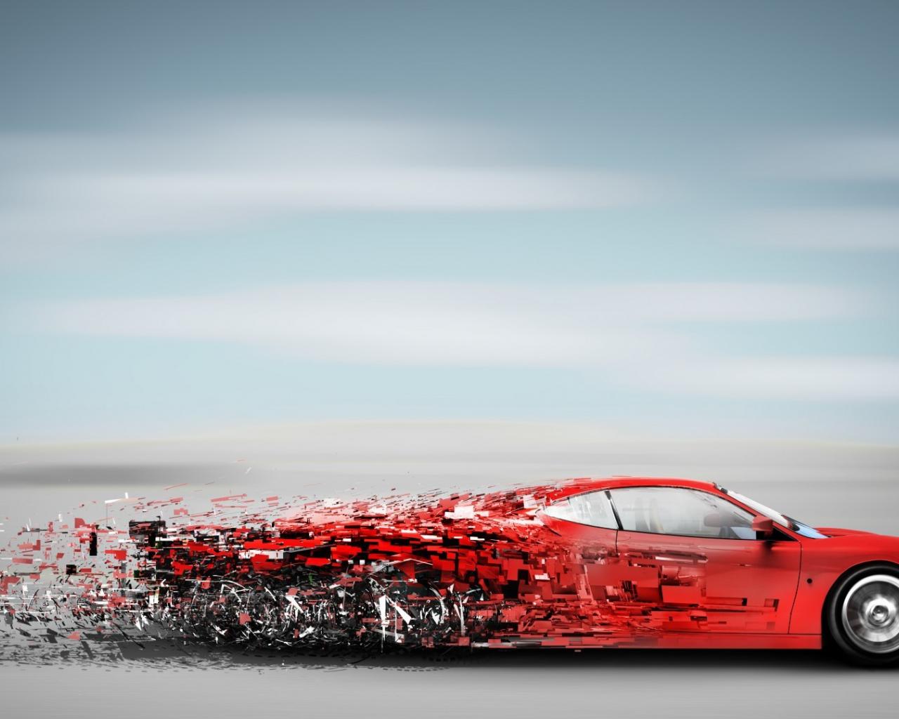Wallpaper Red Ferrari falls to pieces in motion