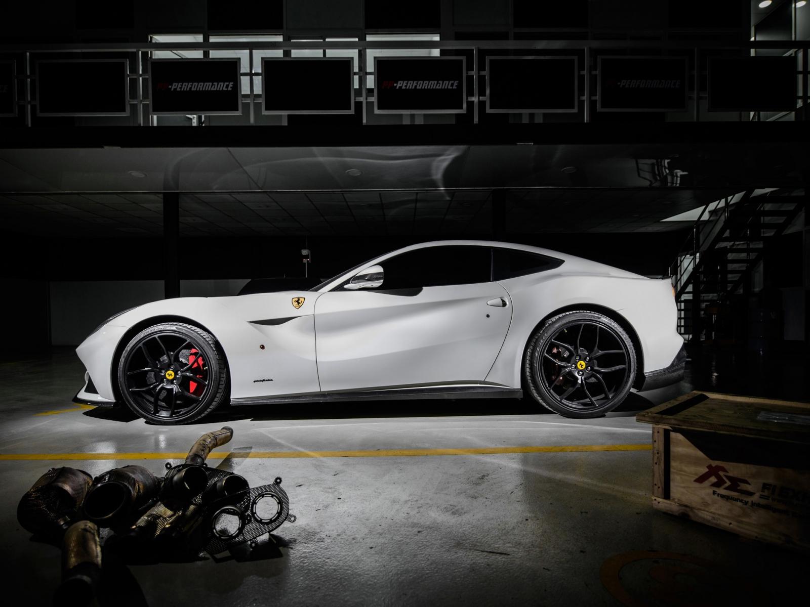 Wallpaper White Ferrari in the garage