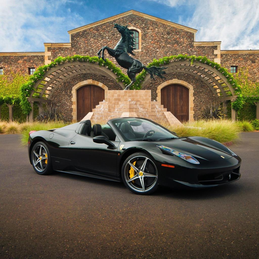 Wallpaper Black Ferrari 458 Spider at the horse sculpture
