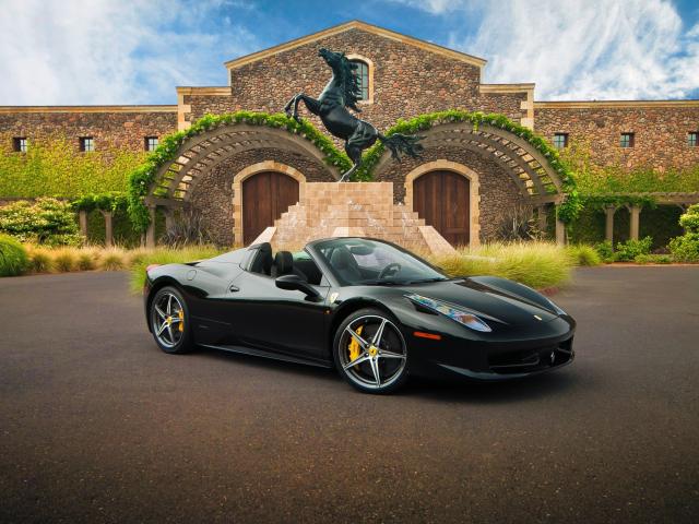 Wallpaper Black Ferrari 458 Spider at the horse sculpture