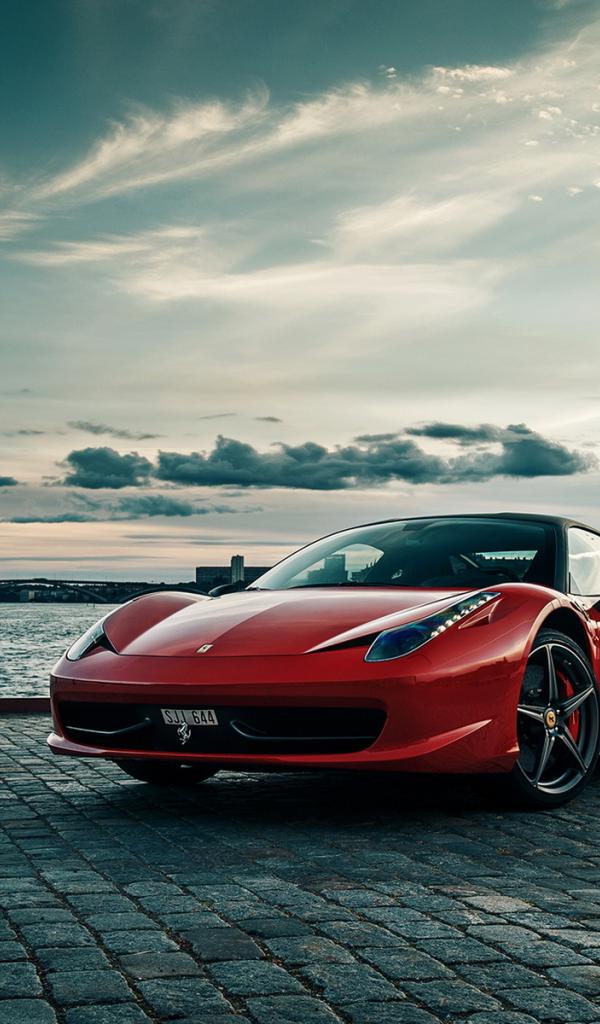 Wallpaper Red Ferrari on the waterfront