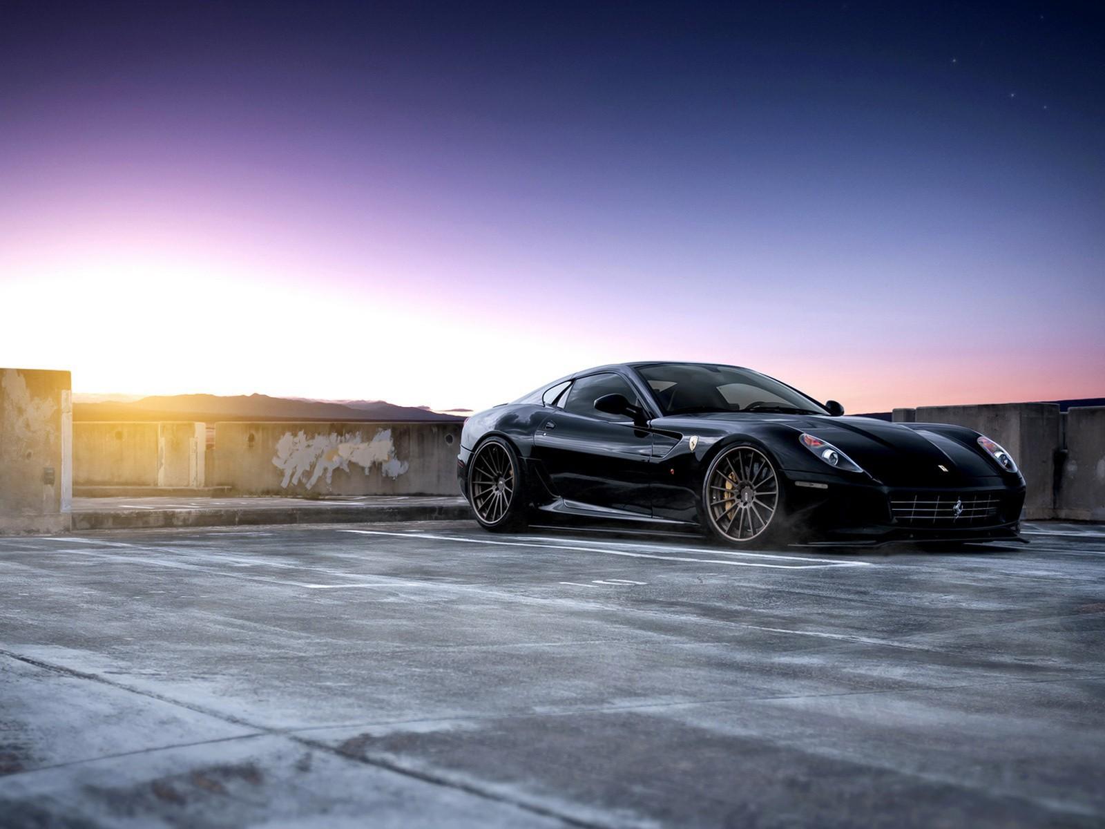 Wallpaper Black Ferrari parked