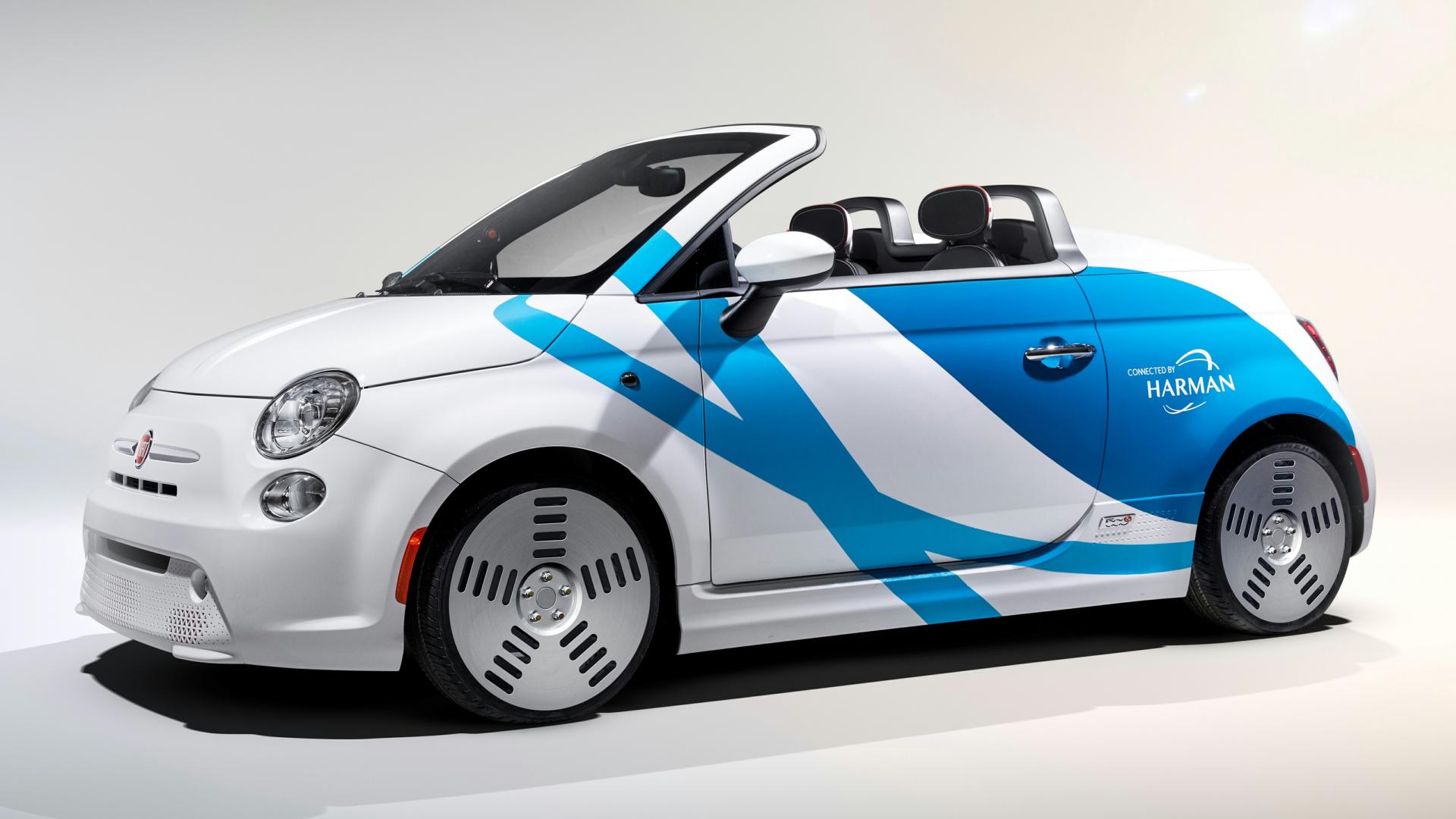 Wallpaper Minivan Fiat 500e, 2019 on a gray background
