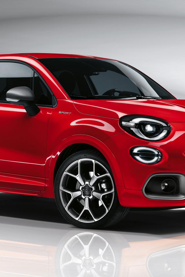 Wallpaper Red Fiat 500X Sport 2019 on a gray background