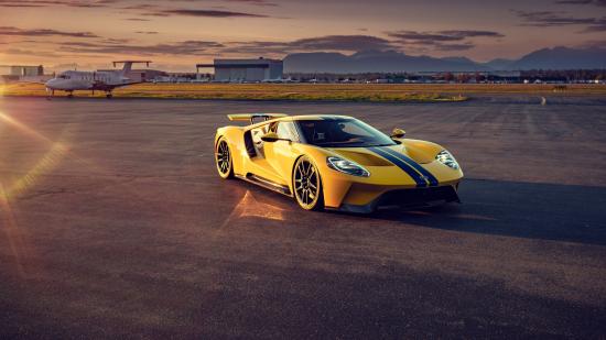 Wallpaper Yellow Runway Ford GT Racing Car