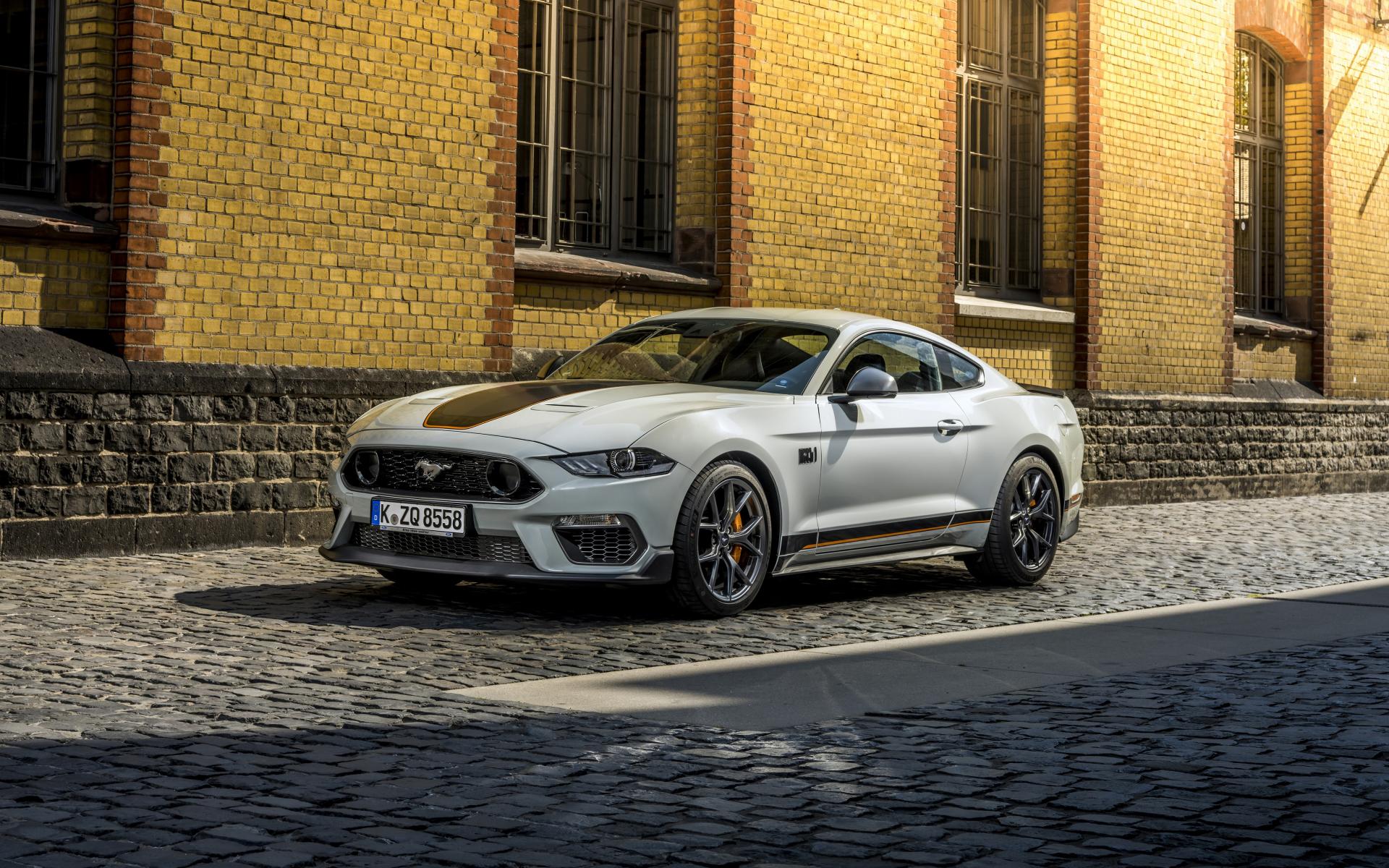 Wallpaper White 2021 Ford Mustang Mach 1 car on the street