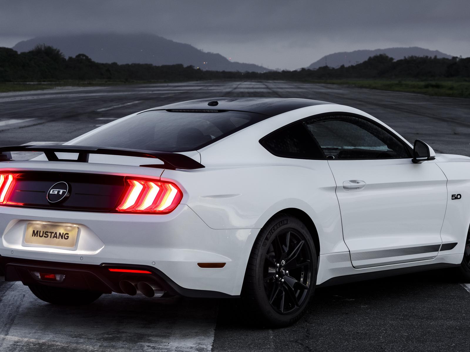 Wallpaper White Ford Mustang GT car, 2019 rear view