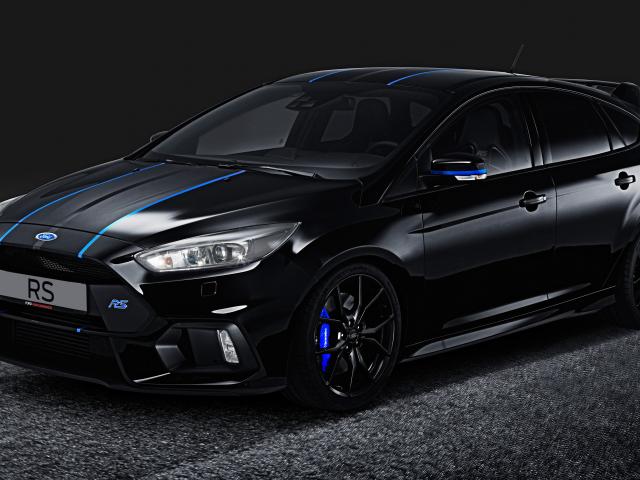 Wallpaper Black car Ford Focus RS, 2018 on a gray background