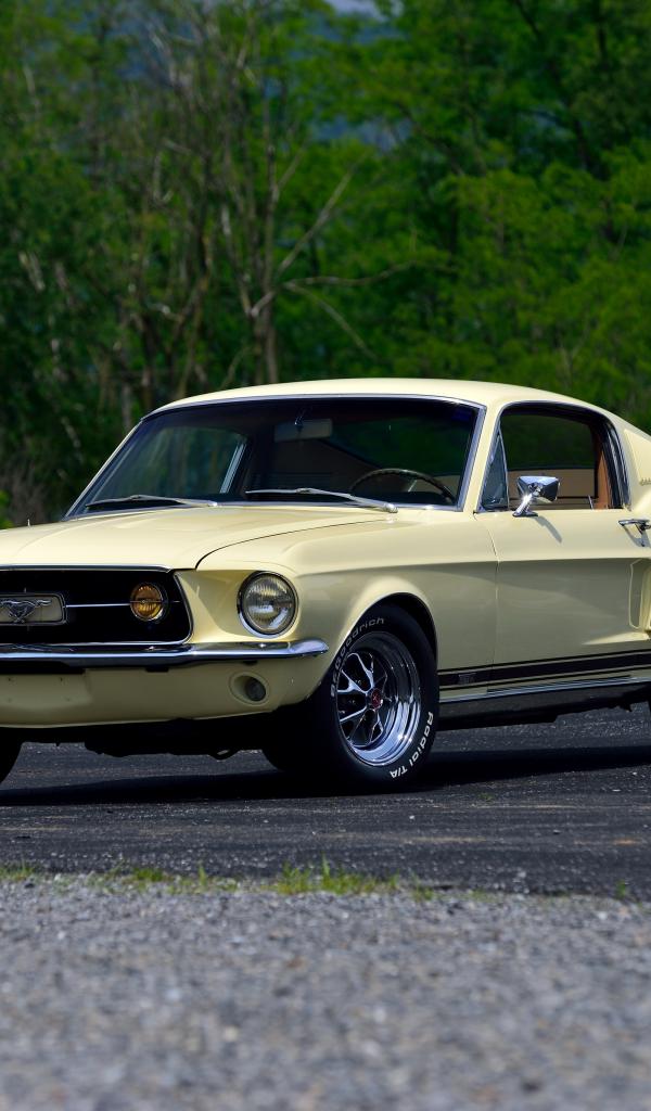Wallpaper Yellow car Ford Mustang on the track