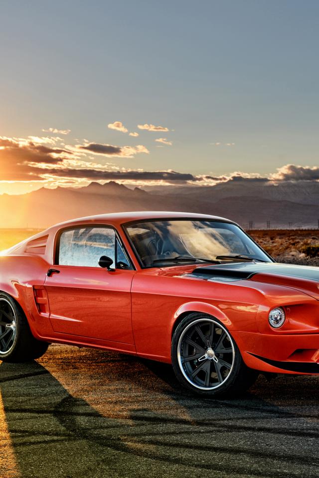 » Wallpaper Red car Ford Mustang at sunset