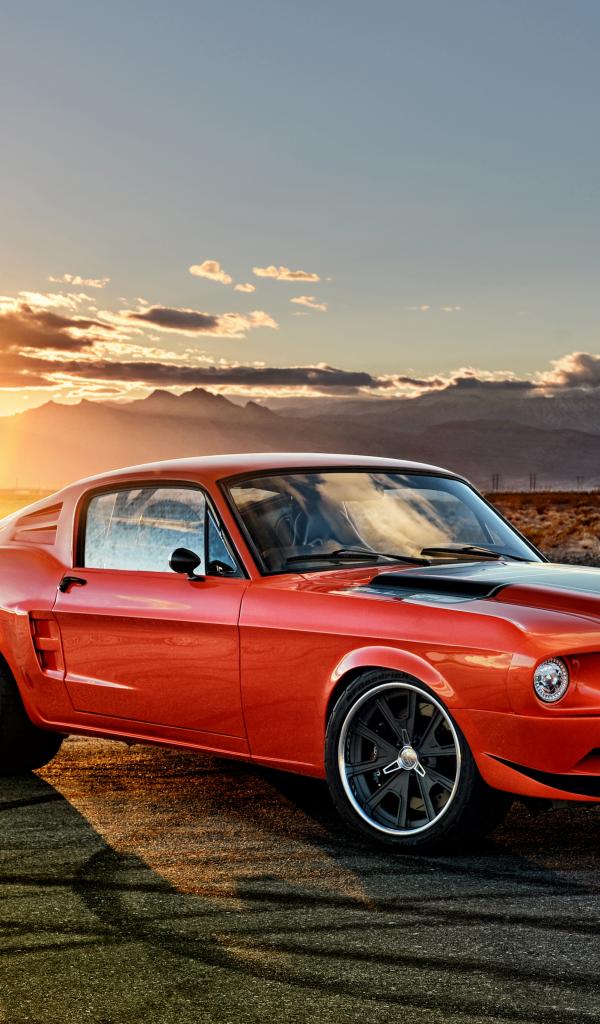 » Wallpaper Red car Ford Mustang at sunset