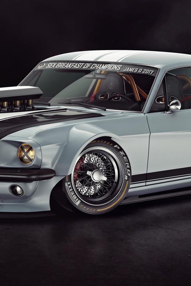 Wallpaper Retro car FORD Mustang 1965 on a gray background