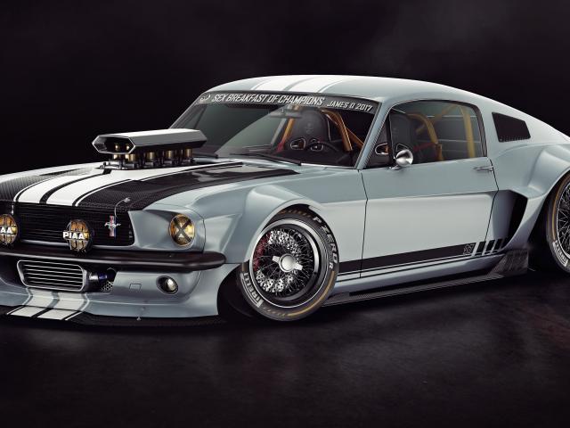 Wallpaper Retro car FORD Mustang 1965 on a gray background