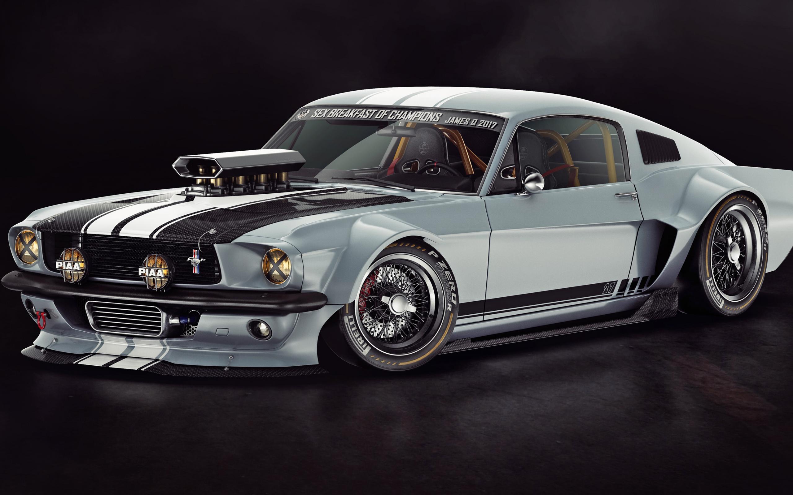 Wallpaper Retro car FORD Mustang 1965 on a gray background