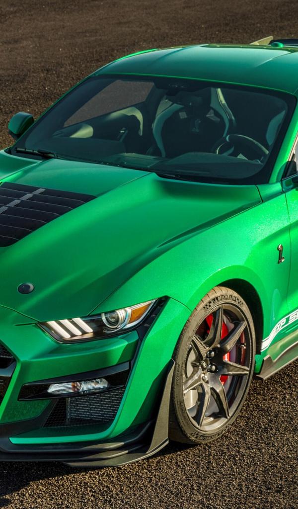 Wallpaper 2020 Ford Mustang Shelby GT500 green car on the pavement