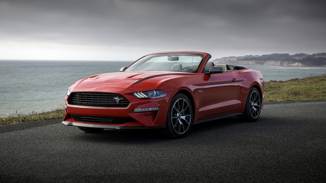Wallpaper Red convertible Ford Mustang, 2020 by the sea