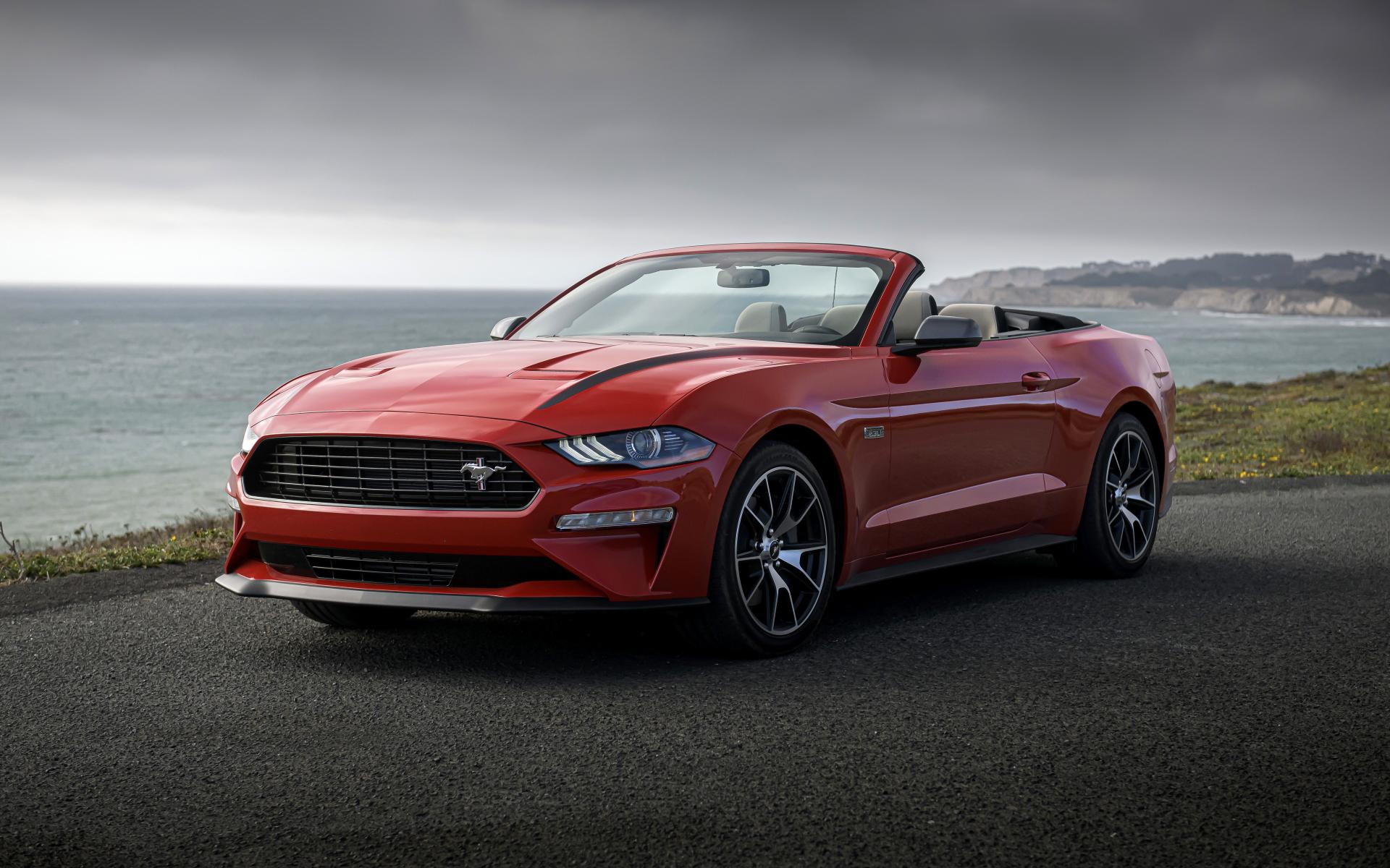 Wallpaper Red convertible Ford Mustang, 2020 by the sea