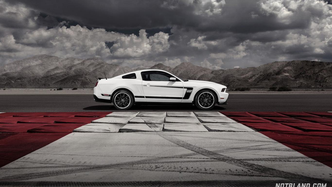 Wallpaper White Ford Mustang in the background of mountains and clouds